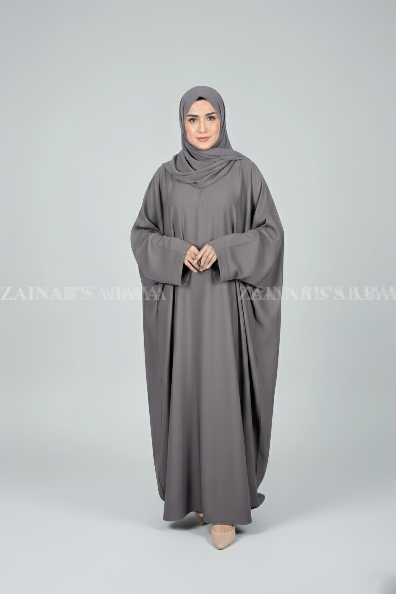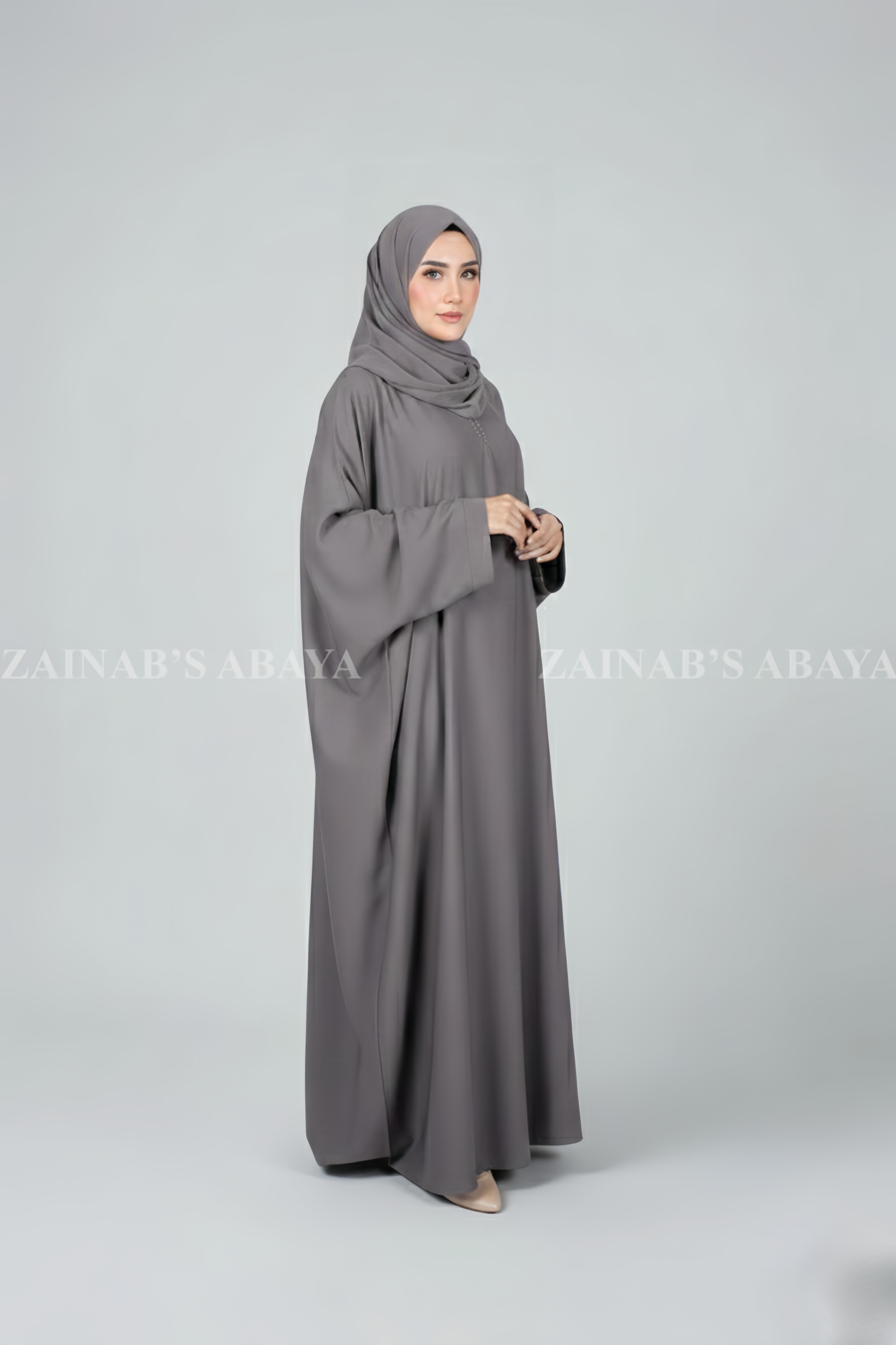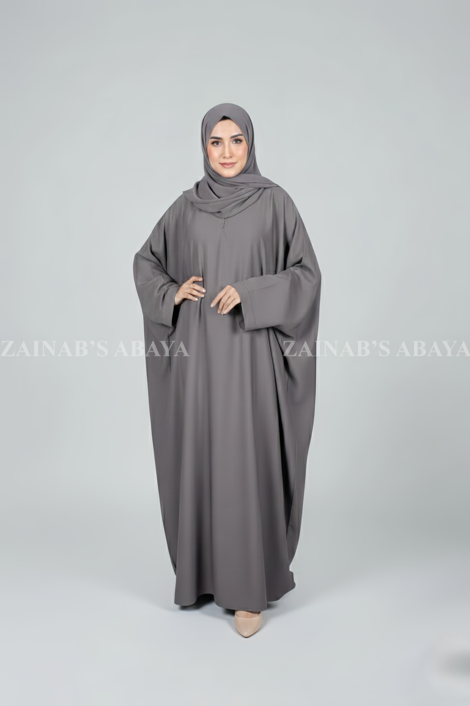 This elegant grey kaftan abaya for women is designed for those who prefer simplicity and a graceful, modest look. Crafted from Premium Nida Korean Fabric, the abaya offers a soft, smooth texture with a beautiful, flowing drape, making it comfortable to wear throughout the day. Its simple, clean design highlights the fabric’s beauty and the elegant grey shade, making it suitable for daily wear and casual gatherings.