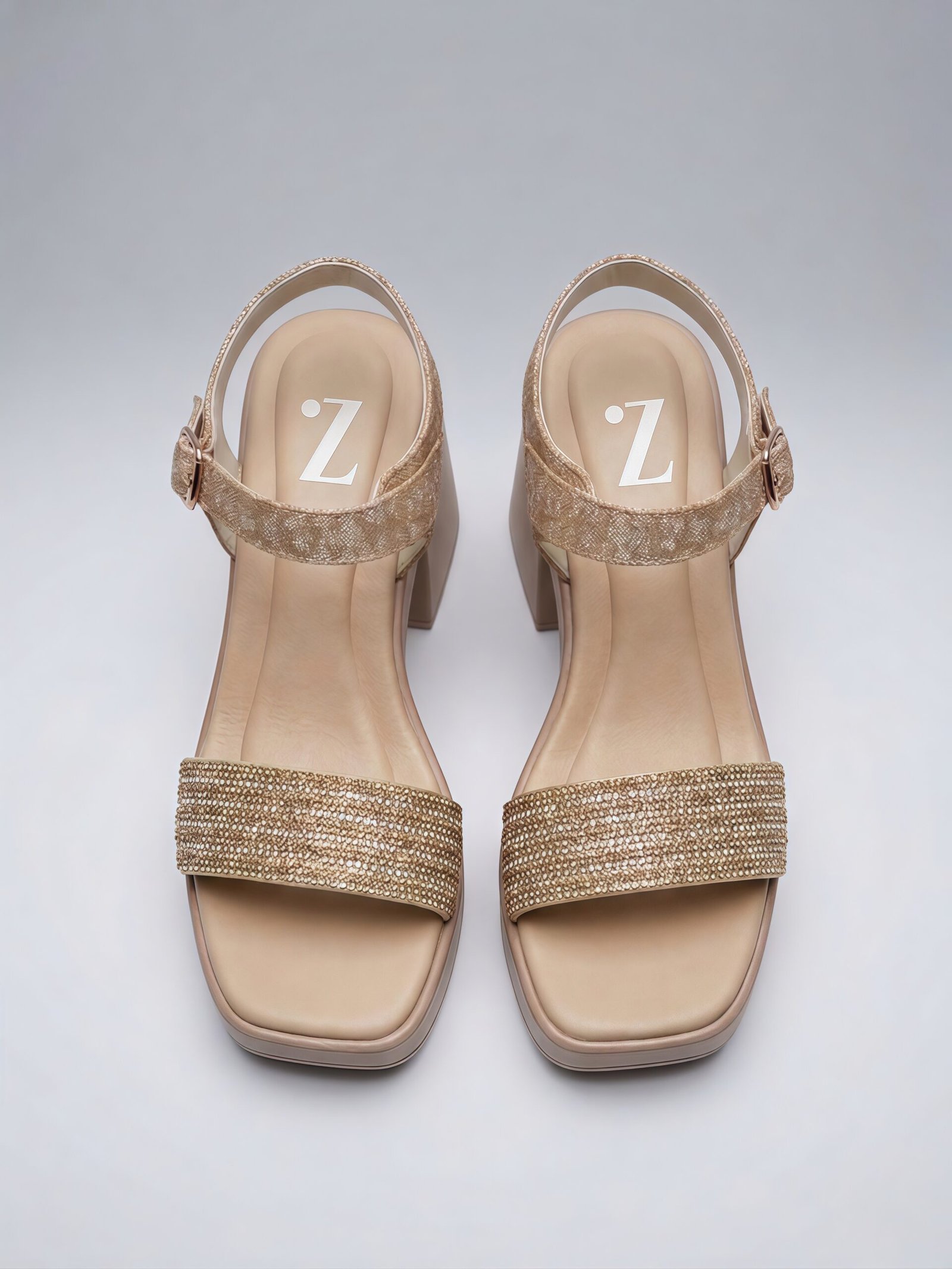 Elevate your look with these elegant platform block heels, featuring a soft gold textured strap and secure ankle buckle. Designed with a cushioned sole and sturdy heel for all-day comfort and balance. Perfect for formal events, parties, or adding a graceful touch to your outfit.