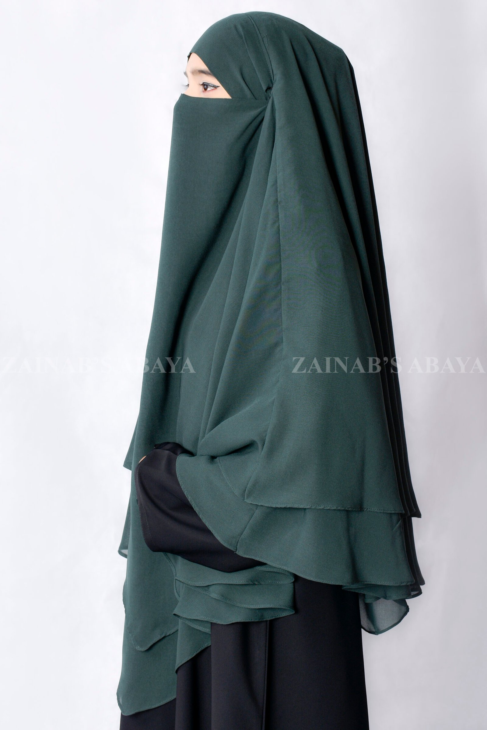 This Green Colored Khimar is made up of Soft Chiffon Fabric and has two layers for extra coverage. It is light, flowy, and comfortable to wear.