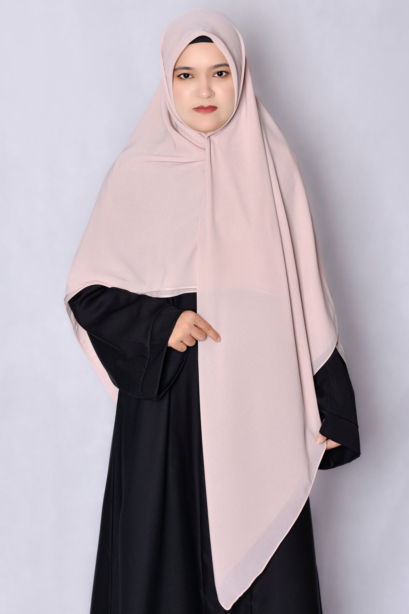 Elevate your everyday elegance. This lightweight scarf is crafted from Premium Chiffon Fabric — soft, breathable, and perfectly draping for hijab styling, virtual journeys, or special gatherings. The design features delicate hand-stitched embroidery along the border, adding a refined, airy charm to any outfit.
