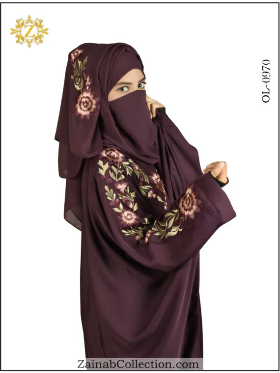 ₨ 8,150Nida Front Open Gown Abaya Unique Embroidery On Sleeves & Front – 0940