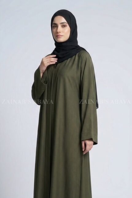 Nida front open abaya with intricate embroidery, offering a stylish and modest design.
