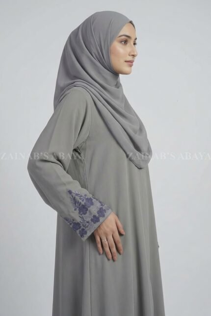 Nida Light Grey Embroidered Maxi Abaya OL-1150